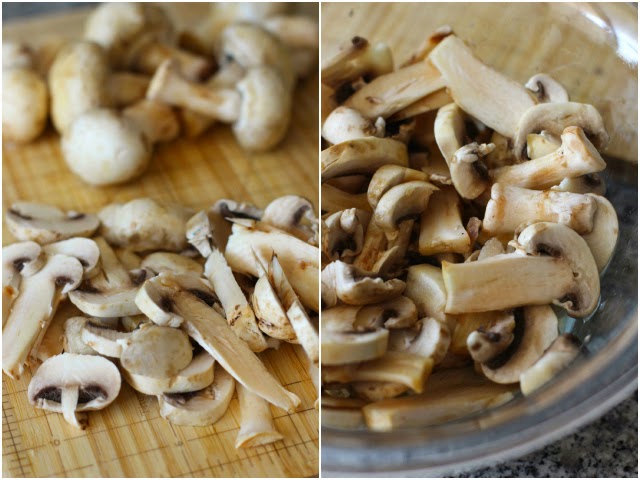 - Lavar y cortar finamente los champiñones. Ponerlos en un bowl o recipiente.